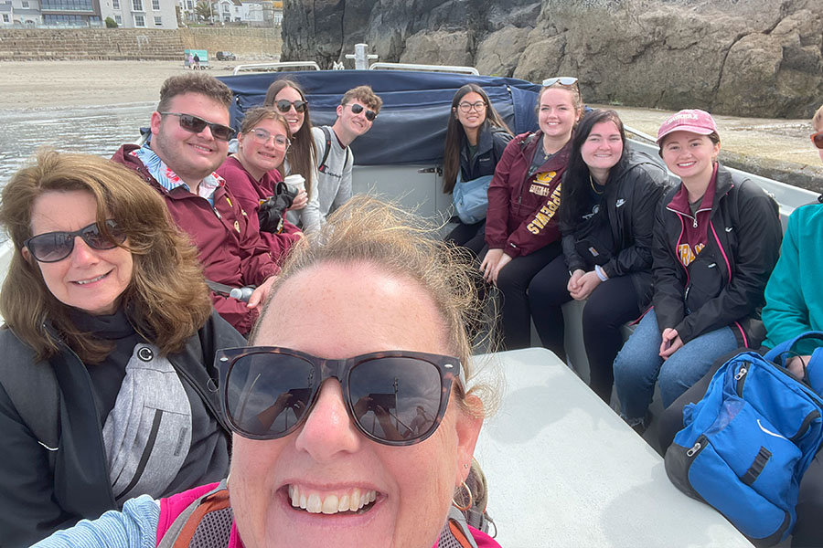 Students meet on campus before traveling to England and Wales for two weeks of hands-on learning and faculty-led discussion. While there, they explore everything from ancient castles to modern marketing, comparing cultural norms, team communication styles, and consumer behavior.