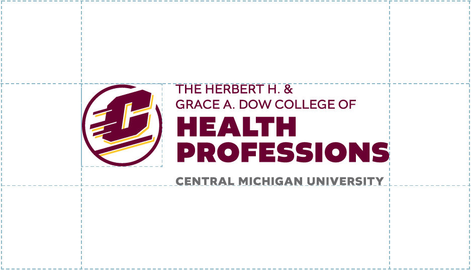 To maintain legibility and visual impact, our CMU Action C Combination lockup must have clear space around it that is not infringed upon by text or other visual elements. Use of the width of the circle in the lockup as a gauge to determine if the logo has sufficient clear space surrounding it.