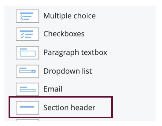 - Type the name of the section into the text box, using the H2 or lower. H1 should not be used.