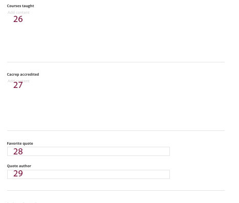 26. Courses Taught: add information about current courses, can also link to programs related to the courses.