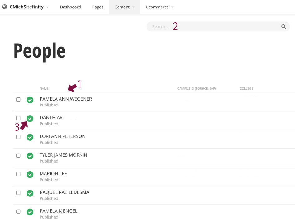 From the Sitefinity main menu, click on Content and select People in the drop-down menu.