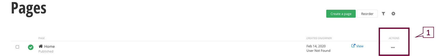1. In the Pages menu, select the page you want to share preview, click the ACTIONS ellipses.