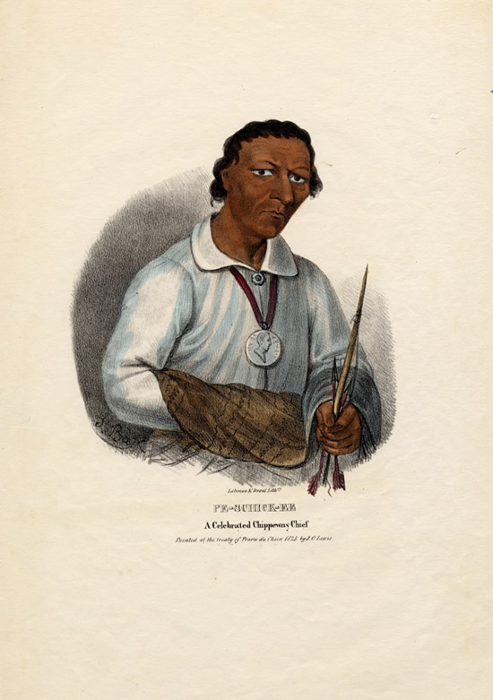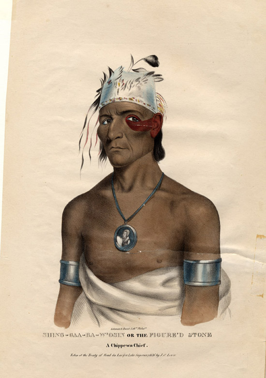 There does exist, however, for the 1820s a unique visual record of the signers that compliments their signature. One member of the federal government's negotiating party in the Great Lakes region was the artist James Otto Lewis (1799-1858). Lewis was commissioned to paint from life Indian leaders. Among others, he attended the proceedings at Prarie du Chien, Fond du Lac, and Butte Des Mortes. Overall Lewis painted more than three hundred portraits of the Native American leaders. A decade after the images were completed Lewis attempted to commercialize his work through a smaller series of approximately seventy published color lithographs.