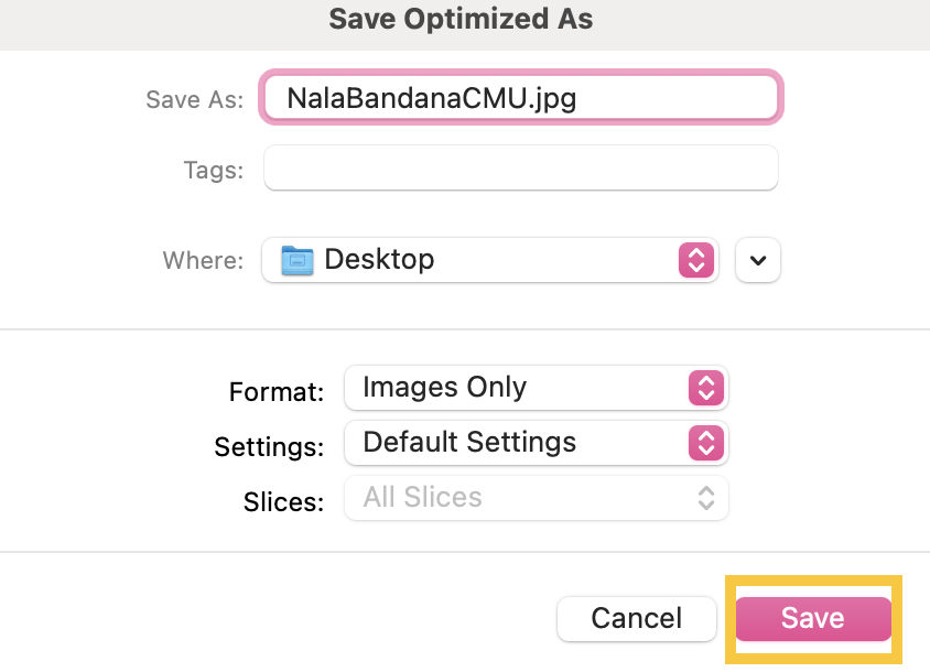 10. Verify the image format is either .JPG or .PNG under Preset.